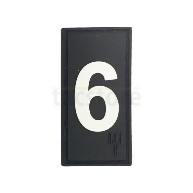 Pitchfork Number 6 Patch - Black, 50 x 25mm, Velcro backed. High-quality patch for your tactical gear.