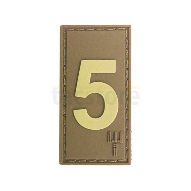 Pitchfork Number 5 Patch - Tan. Velcro backed. Dimensions: 50 x 25mm.