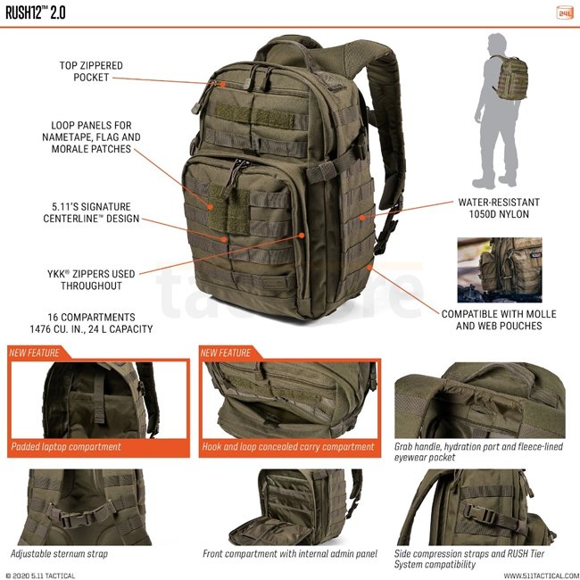 5.11 RUSH12 2.0 Backpack — 24L Tactical Daypack