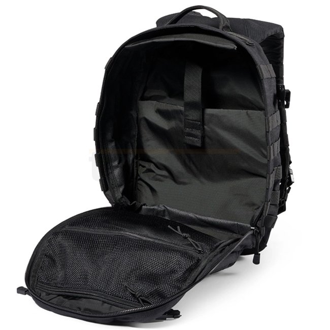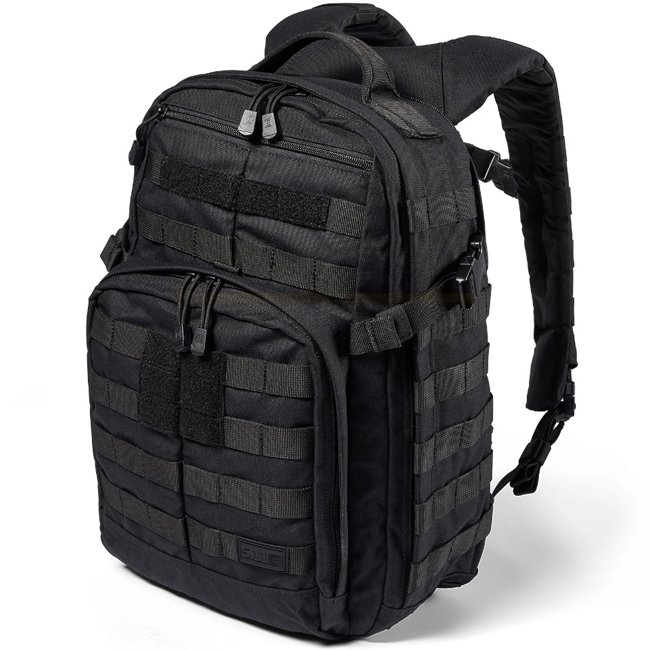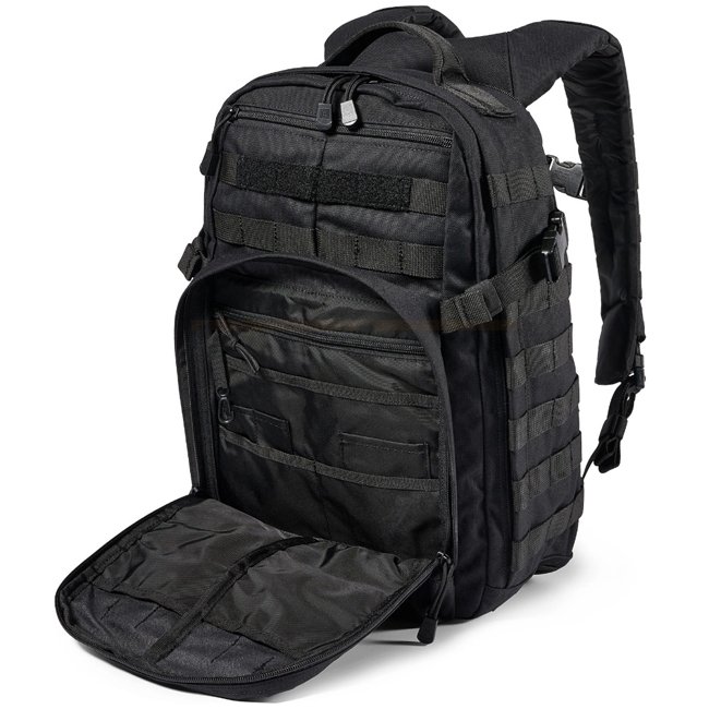 Practical 5.11 Rush12 2.0 Backpack 24L in Black. Volume: 24L. Dimensions: 55 x 28 x 16.5cm. Weight: 1430g. Perfect for daily use and outdoor adventures.