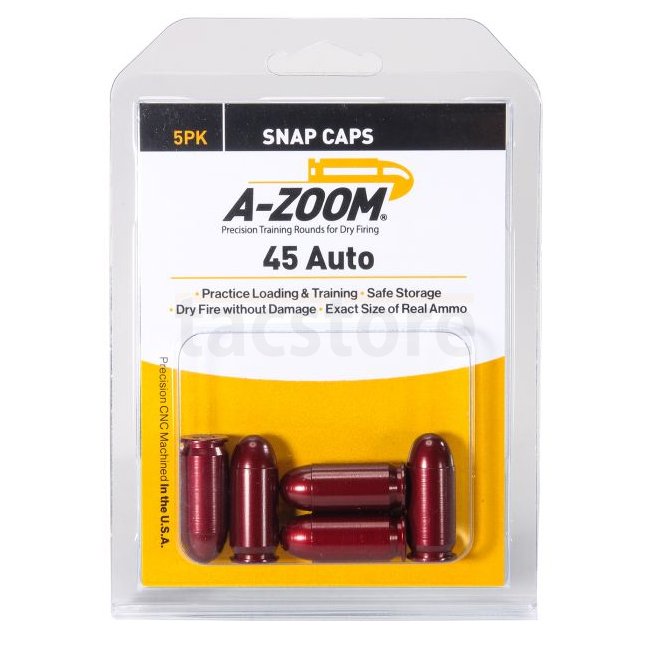 A-Zoom Snap Caps are designed to safely practice dry-firing, function testing, and safe firearm handling without the use of live ammunition. These precision-machined aluminum snap caps protect firing pins and provide realistic cycling and chambering for all firearm types.