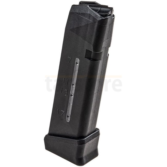 High-capacity Glock magazine, model AC Unity, holds 17+2 rounds. Perfect for extended shooting sessions without needing to reload frequently. Durable construction for reliable performance.