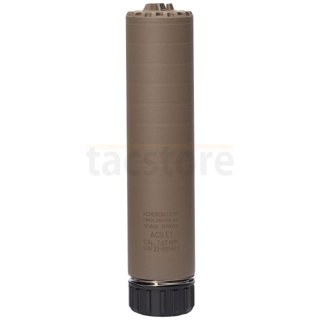 The Acheron ACS E1 HexaLug Suppressor 7.62mm - Dark Earth offers optimal balance, exceptional noise reduction, and robust construction. It features a HexaLug quick-attach system for easy installation.
