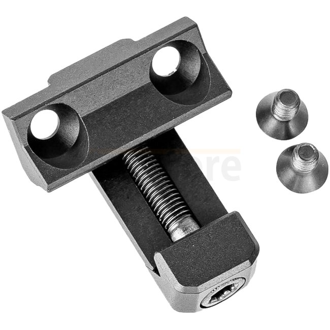 The mount is CNC machined from 6061-T6 aluminum and MIL-A-8625 Type III hard coat anodized. Includes necessary screws to attach light body to mount. Requires an IP27/T27 and IP20/T20 Torx driver for installation (not included). Recommended torque: 30 inch lbs for clamping screw and 20 inch lbs for light body screws with Loctite 222 or 243. Made in the USA.