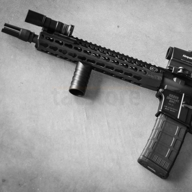 The Vertical Grip is CNC machined from 6061-T6 aluminum and MIL-A-8625 Type III hard coat anodized. Requires a 9/64" Allen wrench for installation (not included). Made in the USA.