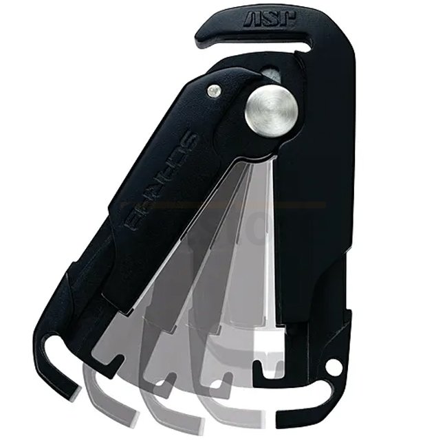 The ASP Scarab Tri-Fold Cutter is a small and compact tool designed to effortlessly free plastic handcuffs without injury. Includes a ring for easy attachment to a keychain or tactical bag.