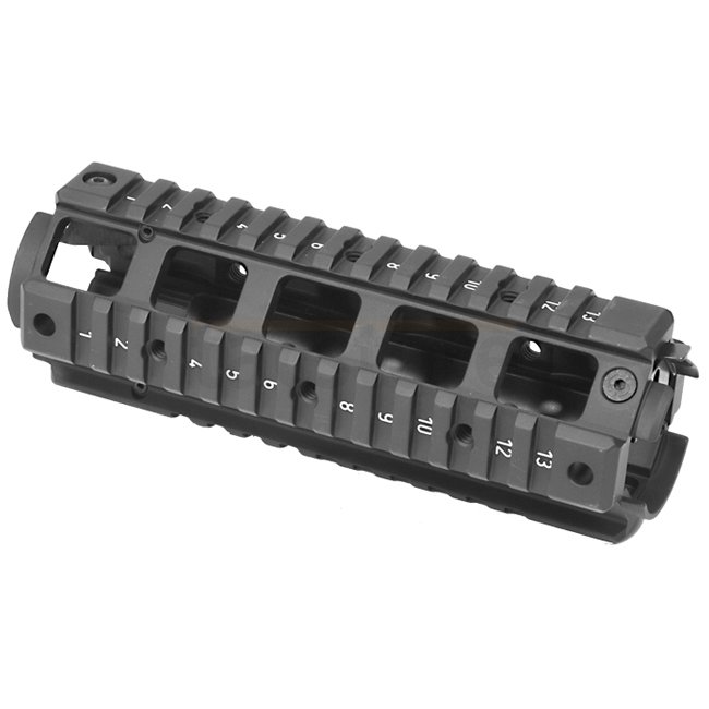 B&T AR15/M4 Railed Handguard AN/PEQ-2 in Black, aluminum construction, 156mm length with 4 NATO Accessory Rails. Ideal for AN/PEQ-2 mounting.