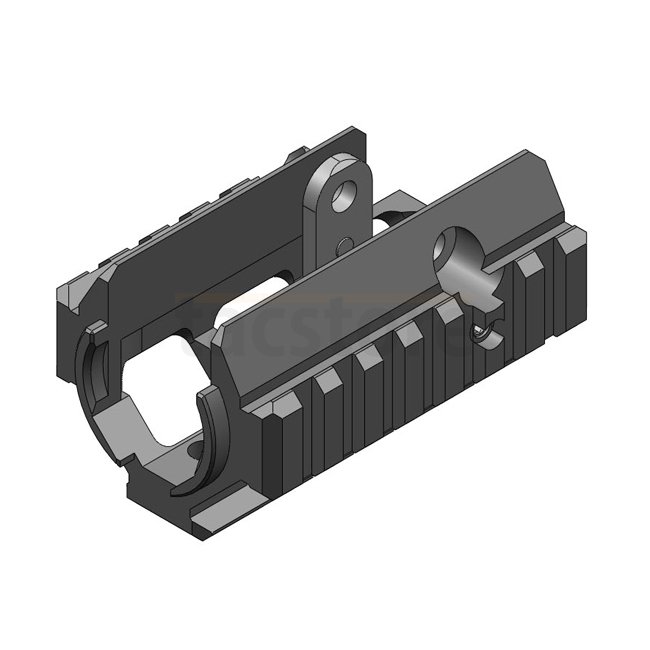 B&T HK MP5K/PDW Handguard in Black, made of Aluminum & Steel with 3 NATO Accessory Rails. Length: 86mm, Weight: 147g. Part number: BT-21573.