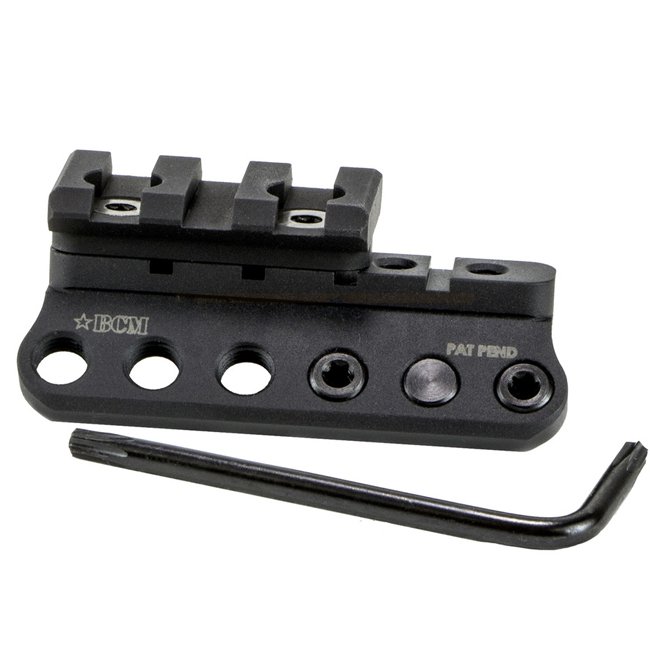 BCM Gunfighter Picatinny Rail Light Mount Modular KeyMod - Ambidextrous, flush or cantilever mount on left or right side. High and low mounting positions. Fits most common 1913 Picatinny pistol/weapon light systems. Multiple mounting holes. Durable Alumin