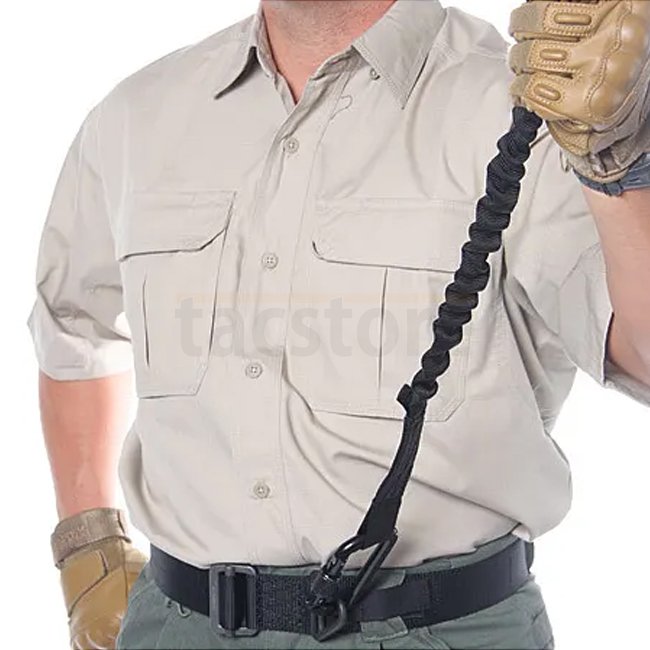 The Blackhawk PRL is designed to act as a personal lanyard when operating from helos, ships or at dangerous heights. Attach locking carabiners to each end. One side of the safety lanyard clips to your belt or rappel harness and the other end attaches to anything solid.