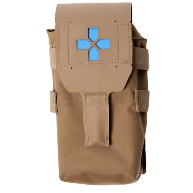 The Blue Force Gear Micro Trauma Kit NOW! Small - Coyote is a compact med kit designed for MOLLE system. 30% smaller than the TKN-MEDIUM, it features a single-motion pull out top design and a laser cut cross on the front outer pouch.