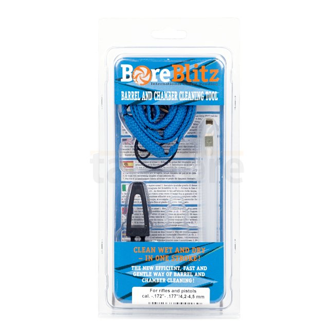 The BoreBlitz run cleaning cord cleans quickly and efficiently, by simply drawn through the barrel of the gun. Besides, the pipe inside is oiled at the same time. To get the BoreBlitz through the pipe, the brass weight from the cartridge side must be introduced and pulled through at the end of the barrel with the aid of the enclosed handle.