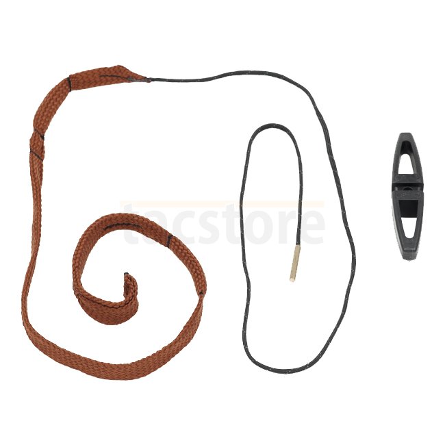 The BoreBlitz run cleaning cord cleans quickly and efficiently, by simply drawn through the barrel of the gun. Besides, the pipe inside is oiled at the same time. To get the BoreBlitz through the pipe, the brass weight from the cartridge side must be introduced and pulled through at the end of the barrel with the aid of the enclosed handle.