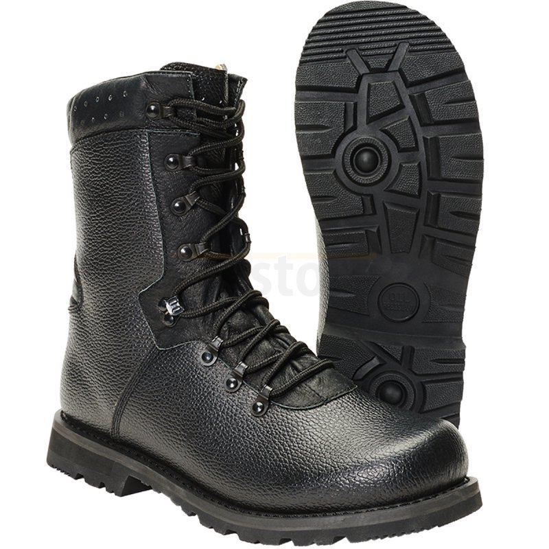 Brandit BW Combat Boots Model 2000 - Black - 40, made of resistant leather with oil-resistant grip sole. Features 8-whole-lacing, removable insole, and padded shaft end. Material outside and inside is 100% real leather with rubber sole.