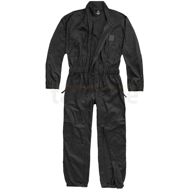 Brandit Combat Suit - Black - S - Allround coverall for work, spare time, and operations. Durable 2-way front zips, multiple pockets, elasticated waist, cuffs, and hem. Velcro patch on the chest. Made of robust, easy-care material.