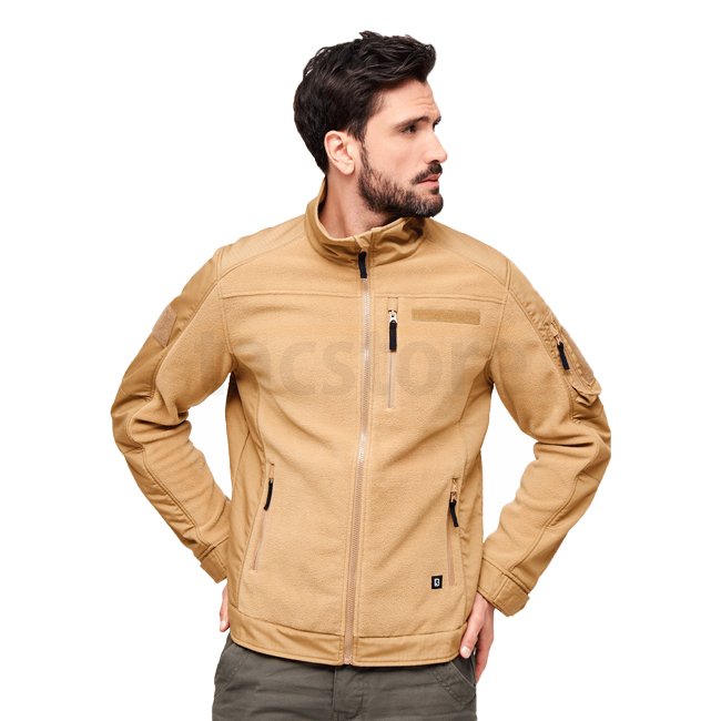 Stay warm and dry with the Brandit Fleecejacket Ripstop in Camel. This functional jacket features a robust, water-repellent ripstop material and multiple pockets for convenient storage. Velcro areas on the arms and chest provide customization options, whi