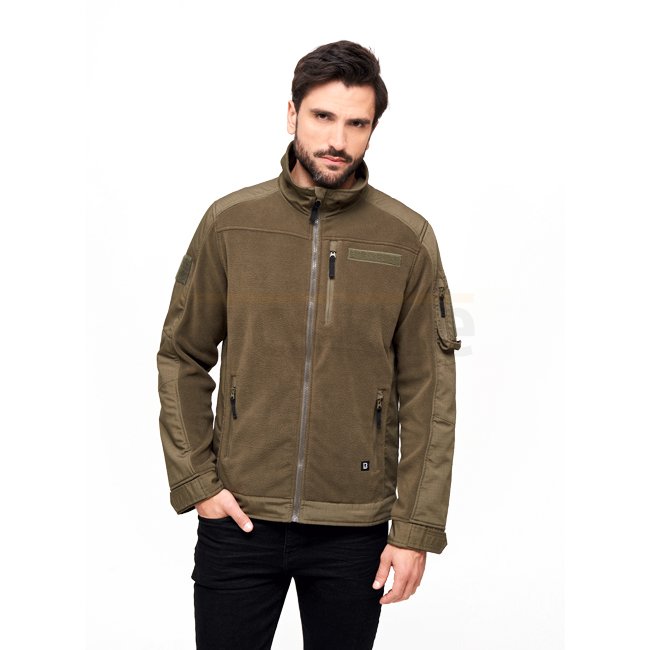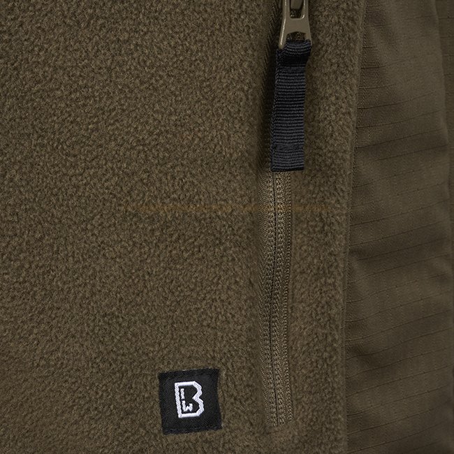 Stay warm and protected in the Brandit Fleecejacket Ripstop. Features water-repellent ripstop material, multiple pockets, plastic zipper, Velcro areas, and adjustable hem. Perfect for outdoor adventures!