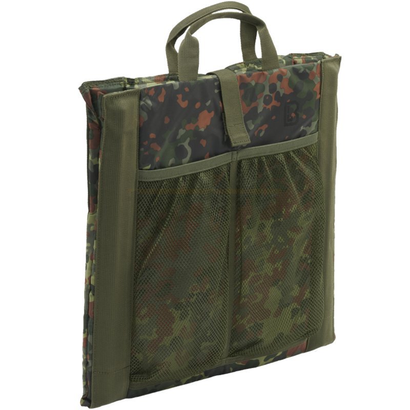 Brandit Foldable Seat - Flecktarn: Folding seat with backrest, ideal for camping, festivals, hiking, beach vacations, or daily use. Net bag for bottles, stable handles, Velcro fastener. Soft seat, adjustable backrest, robust polyester, easy to clean. Shel