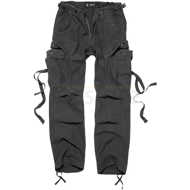 Stylish Brandit M65 Ladies Trousers in elegant black color, featuring loose fit, regular rise, waist-strap, and elastic pleat around knee-area. Made of 100% cotton for ultimate comfort. Perfect for a casual yet chic look.