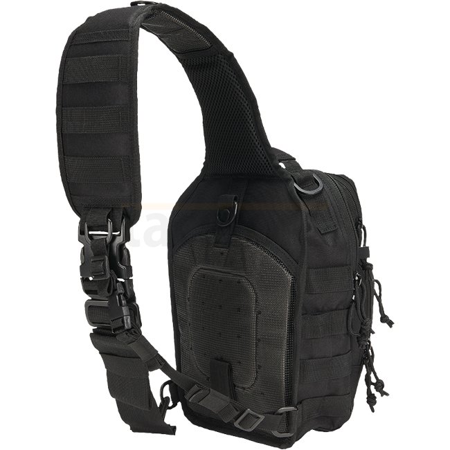 Brandit US Cooper EveryDayCarry-Sling - Black: Compact and versatile sling bag with anti-slip shoulder strap, quick release closure, smartphone pocket, D-rings, and molle for additional equipment. Features an organizer, MOLLE system, documents compartment