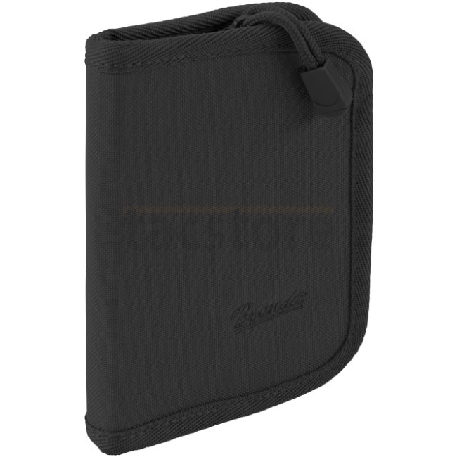 Brandit Wallet - Black: Stylish and durable wallet made of robust 600DEN polyester material, featuring a high quality zipper, large coin compartment, numerous card slots, foldable passport window, and two bank note slits.