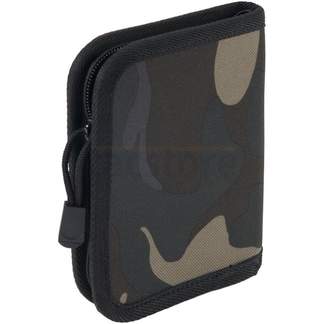 A durable Brandit Wallet in Dark Camo with spacious compartments, high-quality zipper, and convenient card slots. Ideal for organizing cards, coins, and banknotes. Made of robust 600DEN polyester for long-lasting use. Perfect for travel with a foldable tr