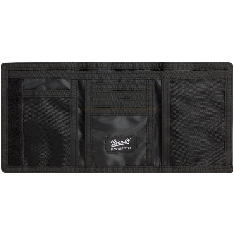 Brandit Wallet Three in Black is a durable and practical wallet made of 600DEN polyester material with various compartments for coins, cards, and banknotes. An ideal accessory for organized storage in style.