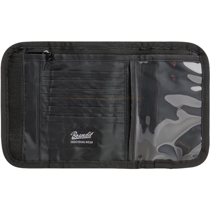 Brandit Wallet Two - Black: Durable polyester wallet with coin compartment, card slots, ID pockets, and banknote compartments. Stay organized with style.