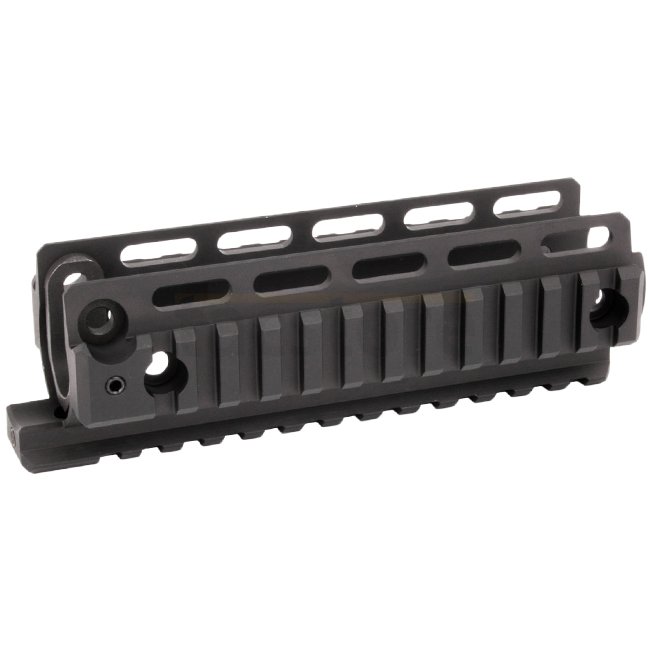This B&T HK MP5 handguard is a lighter version of the classic MP5 handguard, offering three NAR/Picatinny rails for easy accessory attachment. Perfect for mounting fore grips, lights, or lasers. Made of durable aluminium.