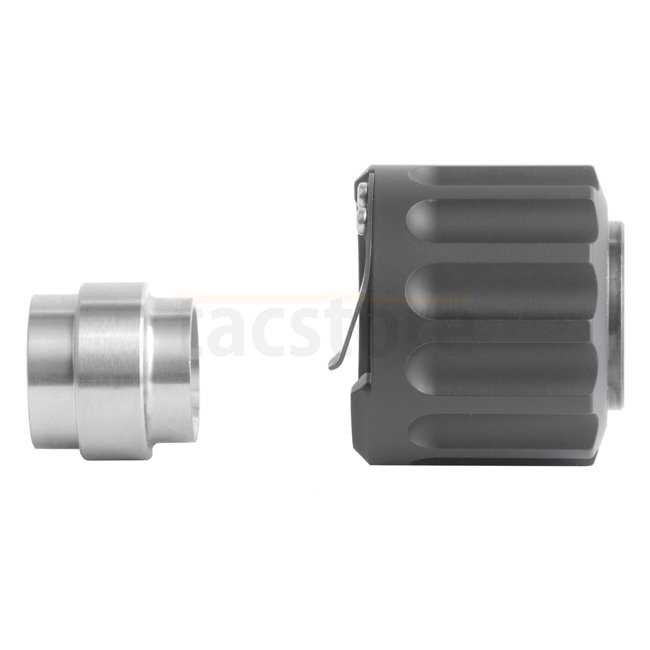 The conversion is simple: unscrew the original fastening nut of the MP9/MP14/TP9 suppressor and replace it with the new fastening nut with integrated guide sleeve.