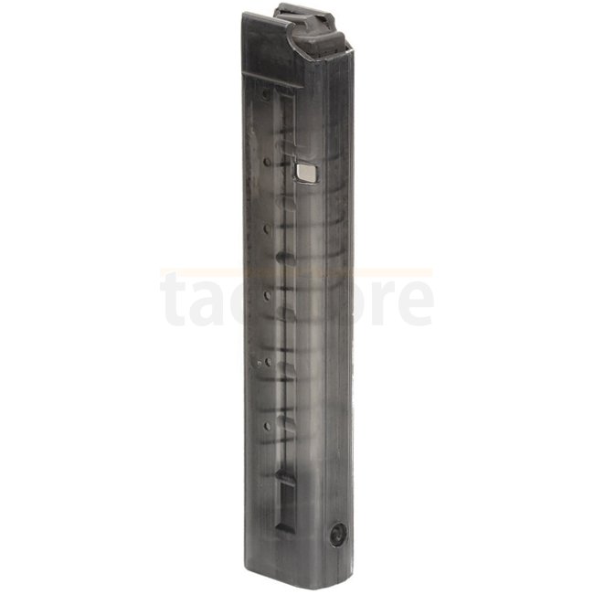 The B&T 20-round restricted magazine uses the same 30-round polymer body but is permanently limited to 20 rounds. It complies with regional capacity restrictions while keeping the reliable function and translucent construction of the standard B&T magazines.
