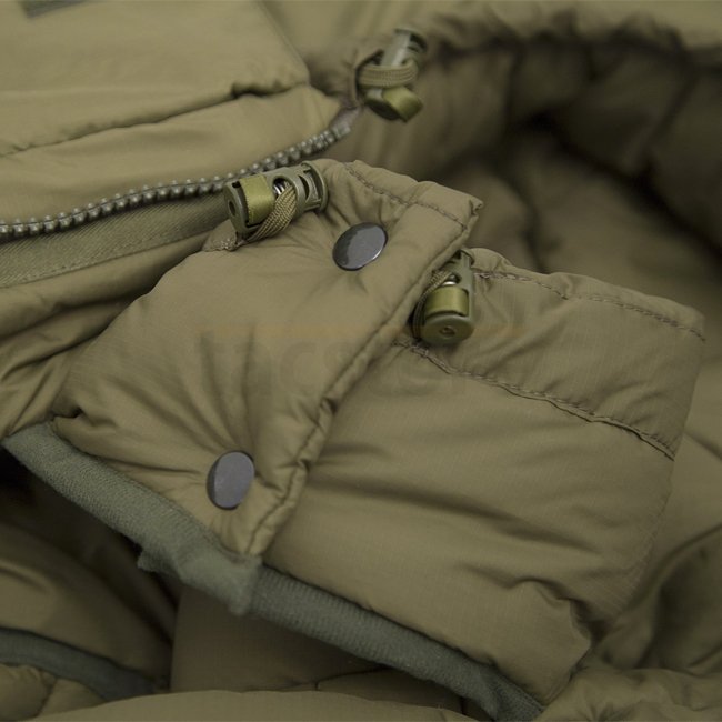 This high performance winter sleeping bag for military use features generous draft tubes, anti-snag tap, protection flap, and differential cut for maximum loft. Plus, it can be opened at the bottom to walk and worn like a coat. Model: Survival One. Length
