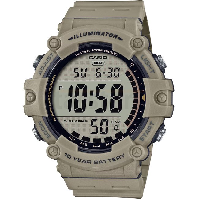 Casio Illuminator Max - Sand Beige: Bold design, practical readability, large display, 10-year battery life, rugged durability, Super Illuminator LED backlight, world time, stopwatch, alarms, water-resistant, lightweight
