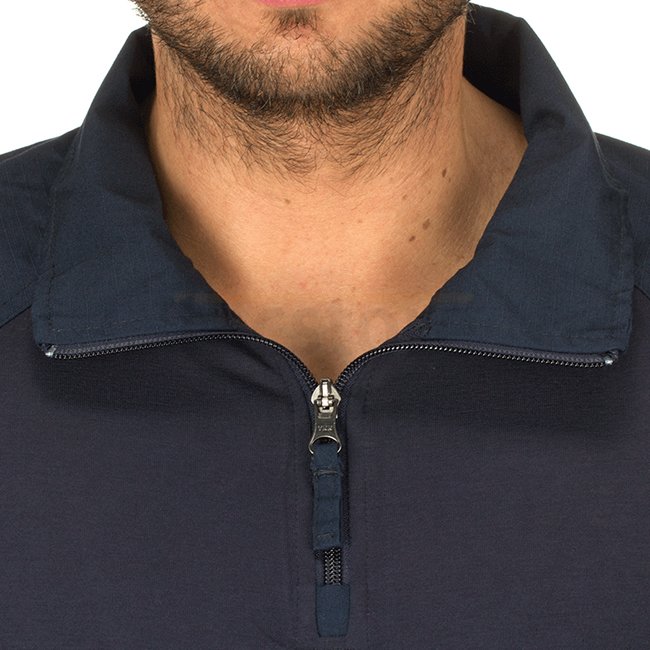 Uncompromisingly designed combat-specific garment specially to be worn under body armor. Its anatomic fit provides great wearing comfort. The torso is made of a fire-retardant fabric, which has been developed for military & law enforcement use and won't melt or drip like polyester when exposed to thermal threats or flames. Moisture wicking capability and sweat absorption in combination with soft feeling surface keeps dry and comfortable during your combat missions. Reinforced elbow areas can be equipped with removable elbow pads. Zip collar is designed to be worn in different varieties for your comfort and to prevent intrusion of dust. Shoulder area is seamless to avoid pressure marks when wearing a backpack.