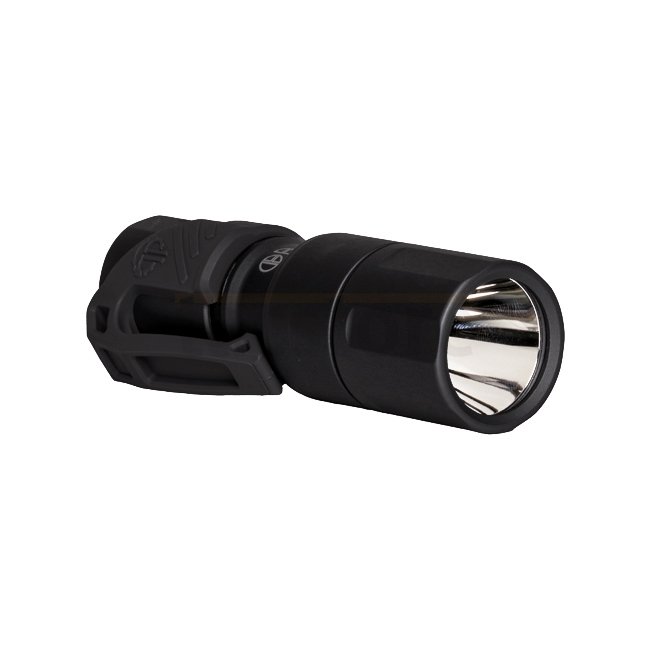 Compact EDC light with 1200 Lumens brightness and 35'000 Candela intensity. Durable 6061-T6 aluminum construction with IPX-8 waterproof casing up to 60 meters. Features permanent and momentary activation modes. Includes 1x 18350 battery and Mission Config