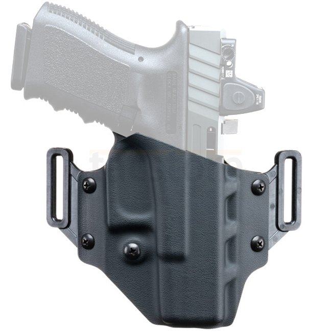The Crucial Concealment Covert OWB Holster is a durable and streamlined outside-the-waistband holster designed for right-handed users seeking comfortable and discreet carry. Its precision-molded .080" Kydex construction ensures a secure fit, while the curved design contours to the waist for minimal printing. This holster is compatible with red dot sights, accommodating modern handguns equipped with optics.