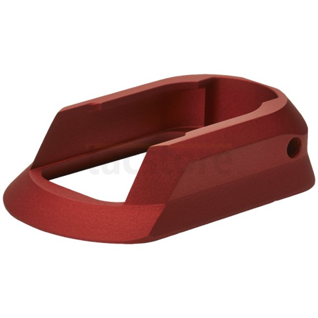 Enhance reloading speed with CZ CZ75 Magwell in red. High-quality aluminum magwell for CZ 75 models. Anodized black finish for sleek & corrosion-resistant surface. Thin design maintains pistol's ergonomics & improves magazine insertion. Easy installation.