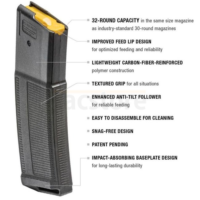 The Daniel Defense magazine for AR-15 platforms offers a rugged and reliable solution for shooters demanding durability and flawless performance. With a capacity of 32 rounds, it slightly exceeds the standard 30-round size while remaining fully compatible with existing pouches and lower receivers.