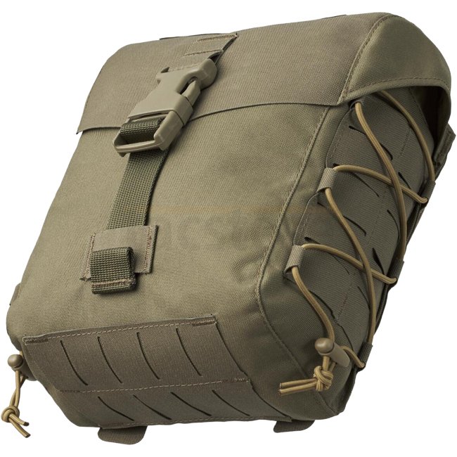 A large multipurpose pouch, designed mainly to be worn on the rear part of the MOSQUITO Modular Belt Sleeve or similar belt setup. The substantial pouch capacity allows to pack all essentials, and the drawstring collar secures the contents, while the buckled flap keeps dust or mud away. The new features include a laser-cut system compatible with MOLLE/PALS on the buckle-closed box-lid flap and added paracord on the sides to reduce the empty volume or to attach items. The pouch is not only compatible with the MOLLE/PALS modular system but also, thanks to paracord loops, can be mounted on any gun belt up to 45 mm wide.
