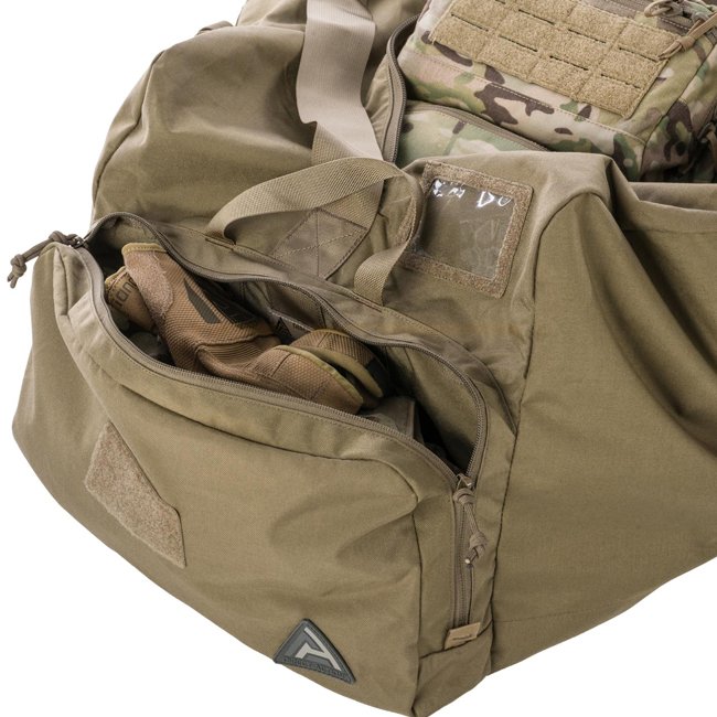 The Direct Action Deployment Bag Medium is a lightweight tactical and is made of durable Cordura 500D fabric. Featured with a wide adjustable shoulder strap, two side handles and two tape handles sewn into its entire bottom, the bag is adapted to heavy loads. It has an easy-access YKK® zipper in the middle, two flat outside compartments and two separate side pockets. Inside the main compartment two zipped mesh pockets were sewn. Deployment Bag Medium has been equipped with two side panels lined with Velcro loop and two transparent tags for easy personalization.