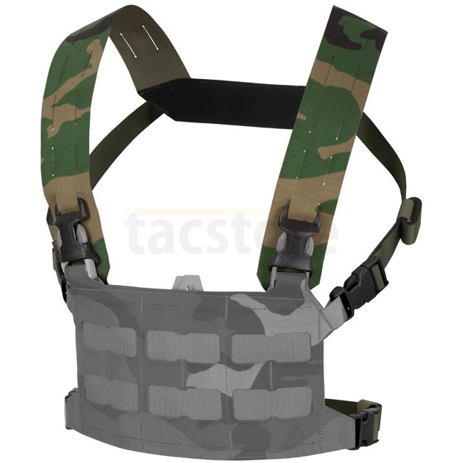 The Direct Action Front Flap Rig Interface in Woodland is made of durable Cordura® 500D / Nylon 210D Laminate. Weighing 200g, it is a lightweight and versatile tactical accessory.