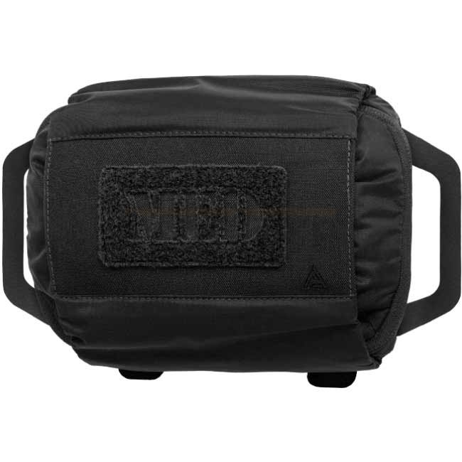 Slightly modified version of MED POUCH HORIZONTAL with visible MED sign for various patches. Partially elastic outer pouch fits medical equipment while remaining flat. Ambidextrous access to insert with antislip Hypalon pullers. Interior has elastic loops