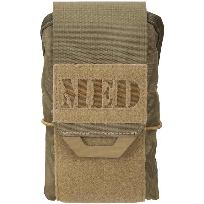 Direct Action Med Pouch Vertical Mk II - Coyote Brown: A sleek and durable med pouch for essential medical equipment. Compatible with MOLLE/PALS platforms and gun belts. Features visible MED sign for patches, lightweight design, and easy one-hand access.