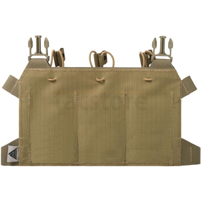 Direct Action Skeletonized Triple 223 Flap - Adaptive Green: Advanced skeletal flap designed for plate carriers, fits up to three M4/AR15 style magazines with secure bungee cord top closure. Lightest modular flap on the market, laser-cut MOLLE/PALS compat