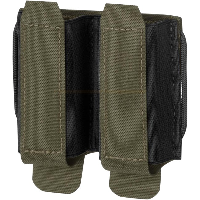 Direct Action Slick Pistol Mag Pouch - Ranger Green. Low profile, modular platform compatible pouch for two double stack magazines. Made with proprietary laminate and wide elastic webbing. Perfect for clear and slick surface without unnecessary bulks.