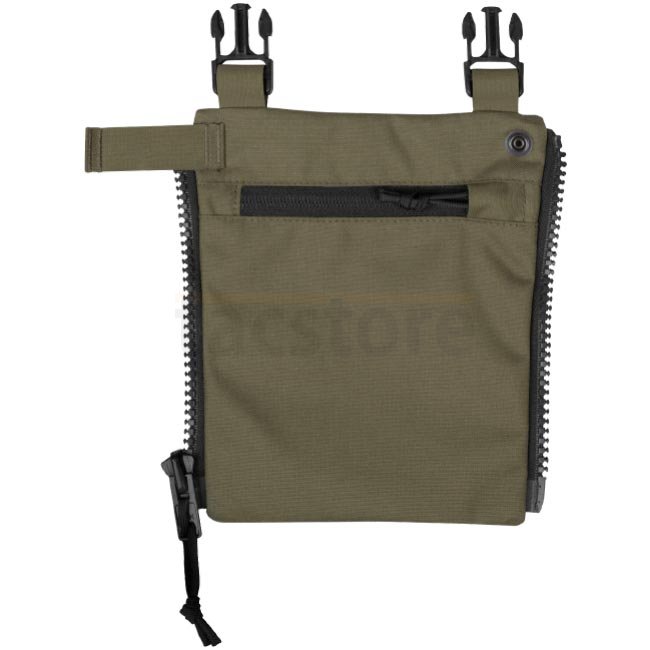 Additional front panel for HURRICANE and TEMPEST Chest Rigs, attachable directly to front zipper. It moves the chest rig sides out of the way, leaving only a flat front surface for a comfortable prone shooting position. Top buckles allow for fast reattachment of the shoulder straps into a more comfortable position. The panel itself has a flat zippered front pocket.