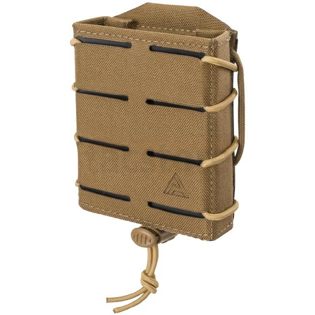 Direct Action Speed Reload Pouch Rifle Short - Coyote Brown: Designed for rapid reloads with safe magazine carry. Hypalon interior, limited top opening, elastic cord for secure magazine retention. Smaller size for better fit on belts and sleeves, position