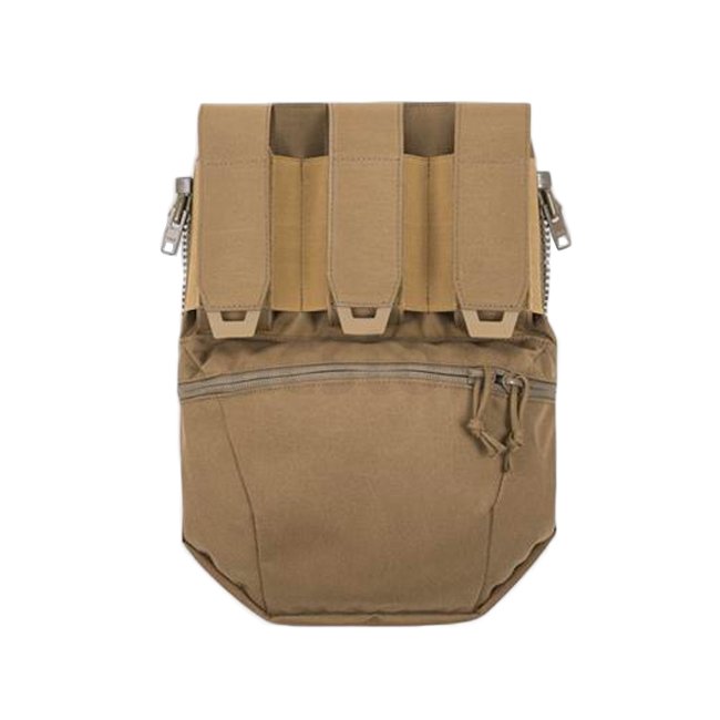 Direct Action Spitfire Assault Panel - Coyote Brown - Assault Panel for SPITFIRE Plate Carrier, designed for rapid reconfiguration, featuring pockets for flash-bangs, spare magazines, universal cargo pouch, soft velour-lined compartment, and flat pocket f