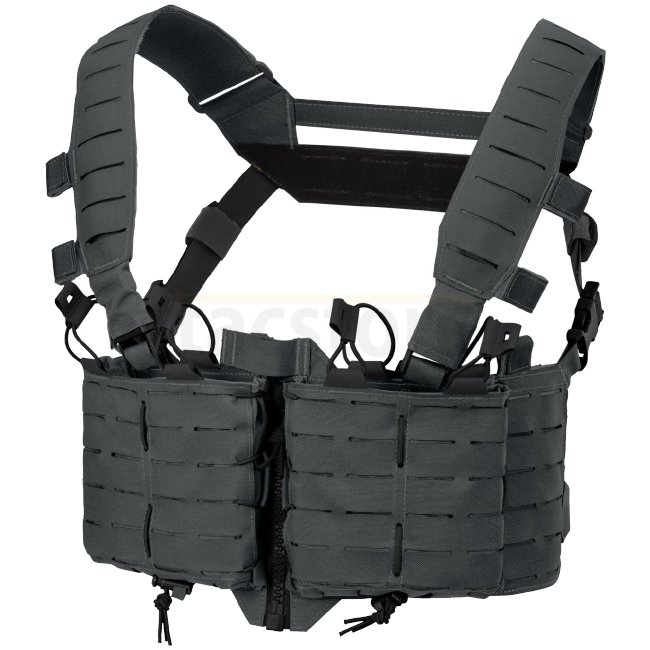 Direct Action Tempest Chest Rig in Shadow Grey - Stripped down and ready for action, TEMPEST chest rig offers increased modularity for full user-customization. The tight split front design allows for comfortable stand-alone use and keeps magazines close w