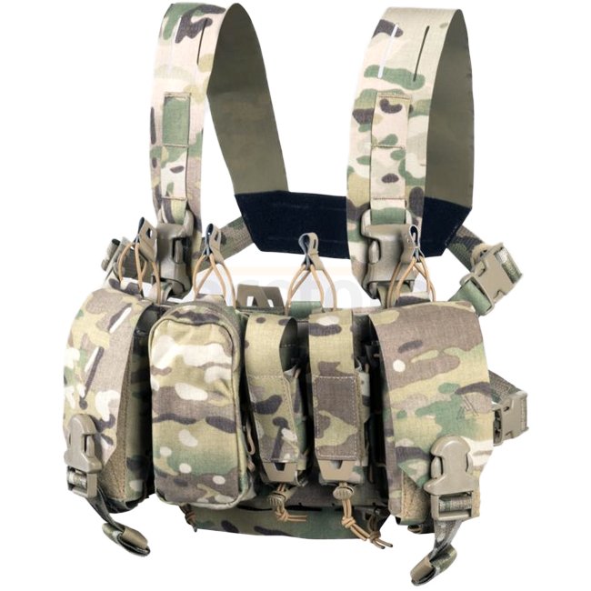 The compact THUNDERBOLT® chest harness is a combination of DIRECT ACTION®'s two most popular chest harnesses with additional end-user feedback. This small but versatile rig features most of the pockets of the popular HURRICANE® hybrid chest harness on an even smaller platform than the TIGER MOTH®. With fixed pockets for magazines, first aid kit and other essentials, you can carry everything as close to your body as possible. The horizontal MOLLE/PALS row below the pouch area can be used to attach additional pouches. The pouch is fully compatible with our chest carrier interface and can be attached to the SPITFIRE® and HELLCAT® plate carriers to create a unique, rapid deployment platform unique to DIRECT ACTION® Gear.